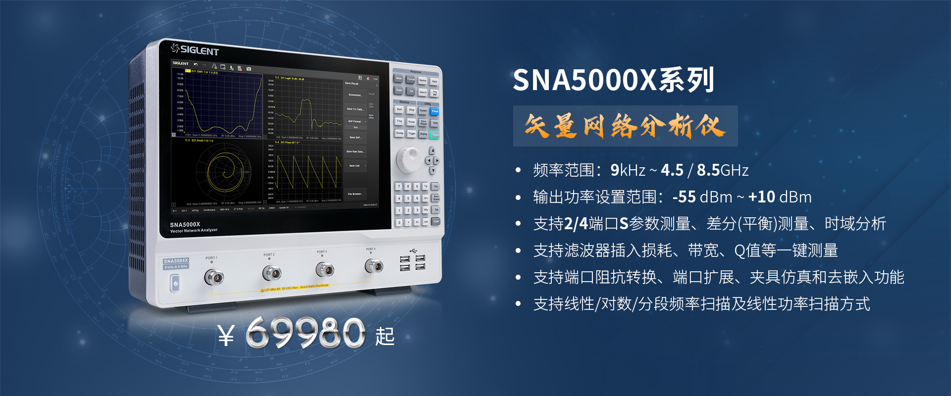 SNA5000X系列矢量網(wǎng)絡分析儀(Vector Network Analyzer),其測量頻率高達8.5GHz,支持4端口S參數(shù)測量,差分(平衡)測量,時域測...
